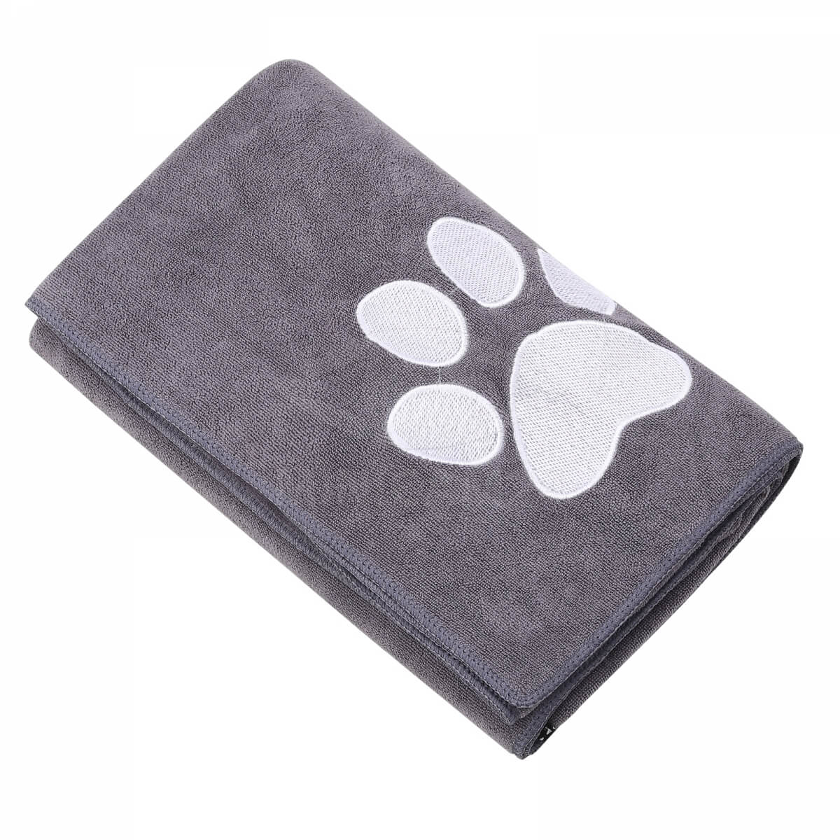 Полотенце для собак и кошек впитывающее из микрофибры - может использоваться как лежанка или подстилка в домике питомца, на мягкой мебели или в салоне автомобиля. С помощью полотенца можно протирать шерсть питомца. Мягкое пушистое полотенце для животных из микрофибры выполнено в сером цвете с вышивкой. Оно прекрасно впитывает все неприятные запахи и жидкости, при этом не оставляет следов на мягкой мебели. Впитывающие свойства позволяют использовать полотенце для сушки животного после мытья или прогулки под дождем. Микрофибра безопасна для кошек и собак, хорошо пропускает воздух, легко очищается и не теряет своей формы и свойств даже после частой эксплуатации.